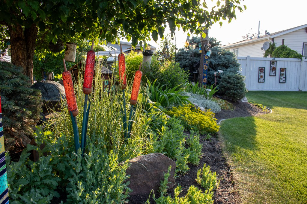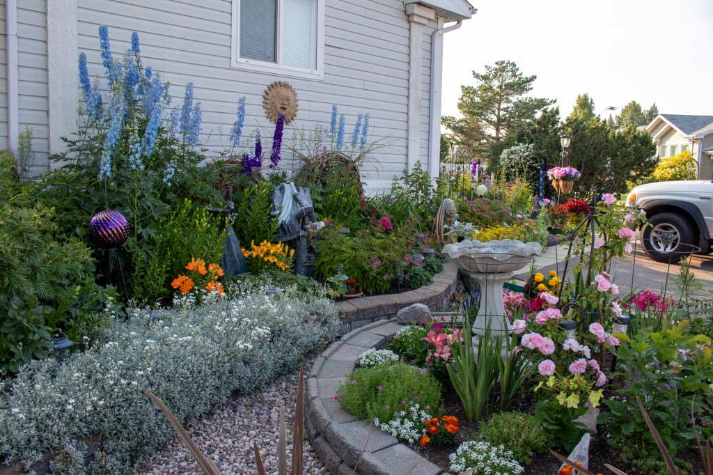 In the heart of Strathcona County, there lies a garden that bursts with color, creativity, and an undeniable touch of magic. Norma, who has resided in her home since 2004, has transformed her yard into a vibrant and whimsical retreat, drawing inspiration from the charming, unpredictable beauty of English gardens. Norma’s journey into gardening began when she moved into her home, and since then, she has nurtured her garden into a stunning display of flora and artistry, entirely self-taught and driven by her own creativity.