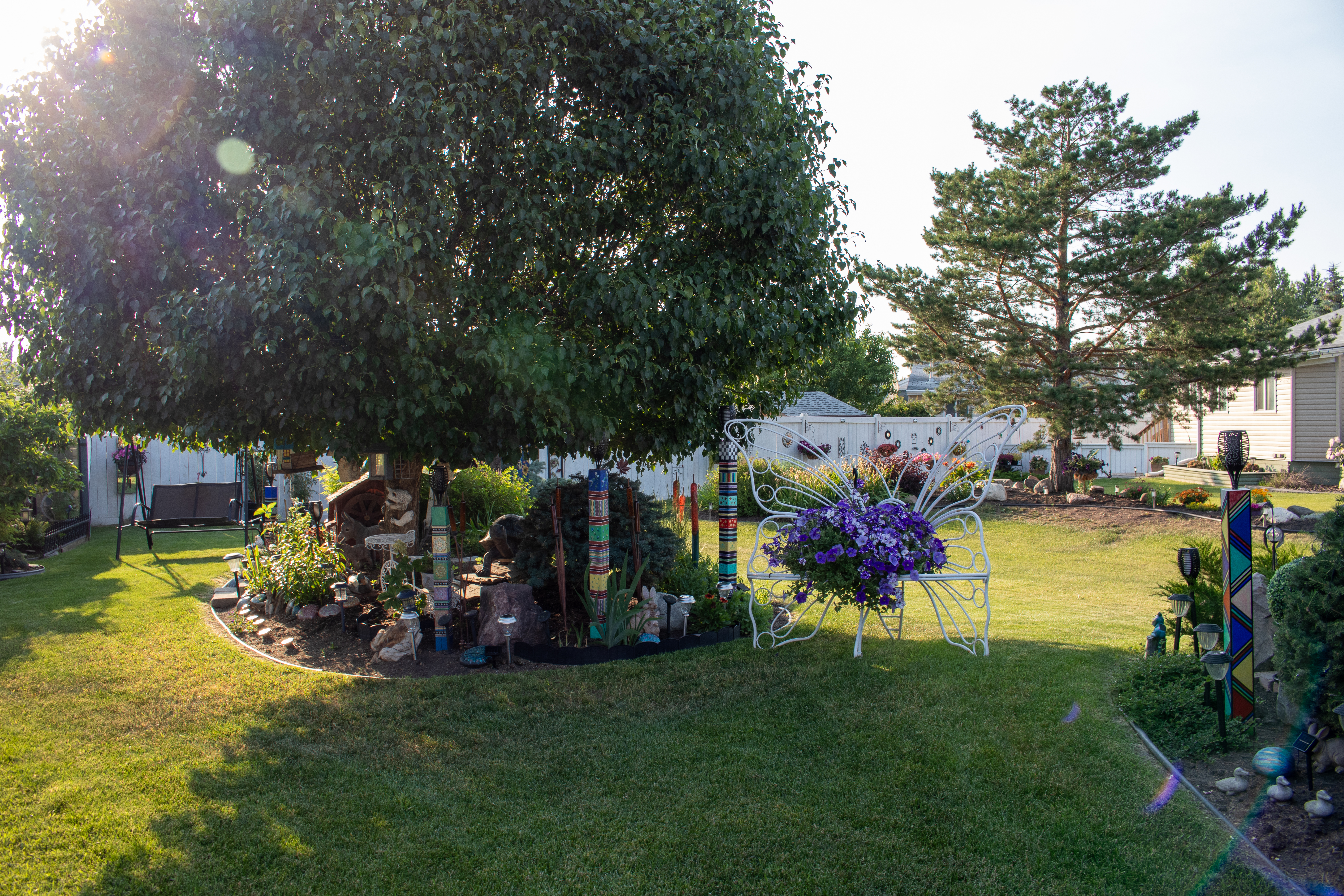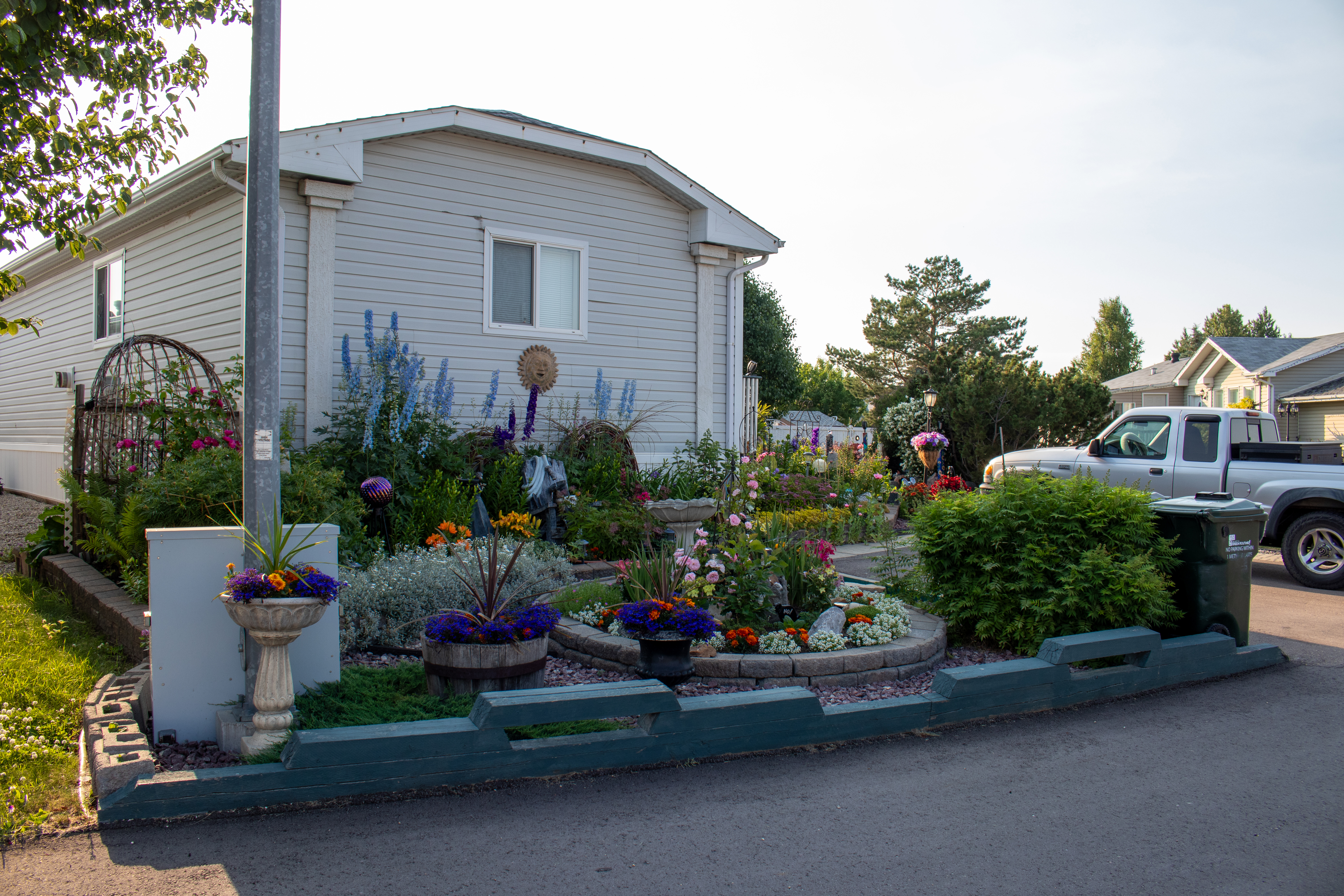 In the heart of Strathcona County, there lies a garden that bursts with color, creativity, and an undeniable touch of magic. Norma, who has resided in her home since 2004, has transformed her yard into a vibrant and whimsical retreat, drawing inspiration from the charming, unpredictable beauty of English gardens. Norma’s journey into gardening began when she moved into her home, and since then, she has nurtured her garden into a stunning display of flora and artistry, entirely self-taught and driven by her own creativity.
